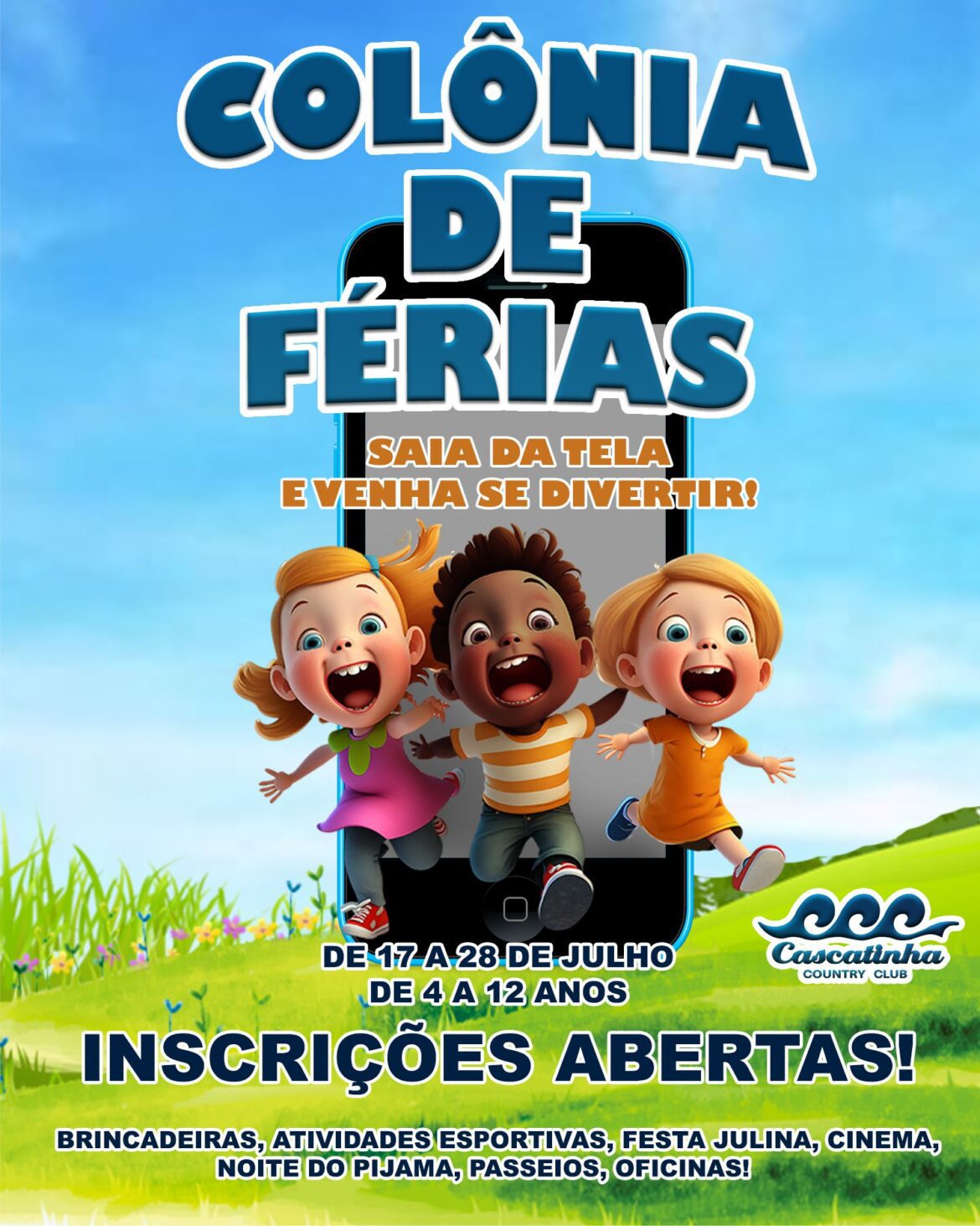 Inscrições abertas para a nossa Colônia de Férias com muita diversão para o seu pequeno! Informações com a secretaria pelo (32) 3229-4100/ (32) 3229-4110 (whatsapp). Traga seu filho para se divertir com a gente! Confira o cronograma e valores: