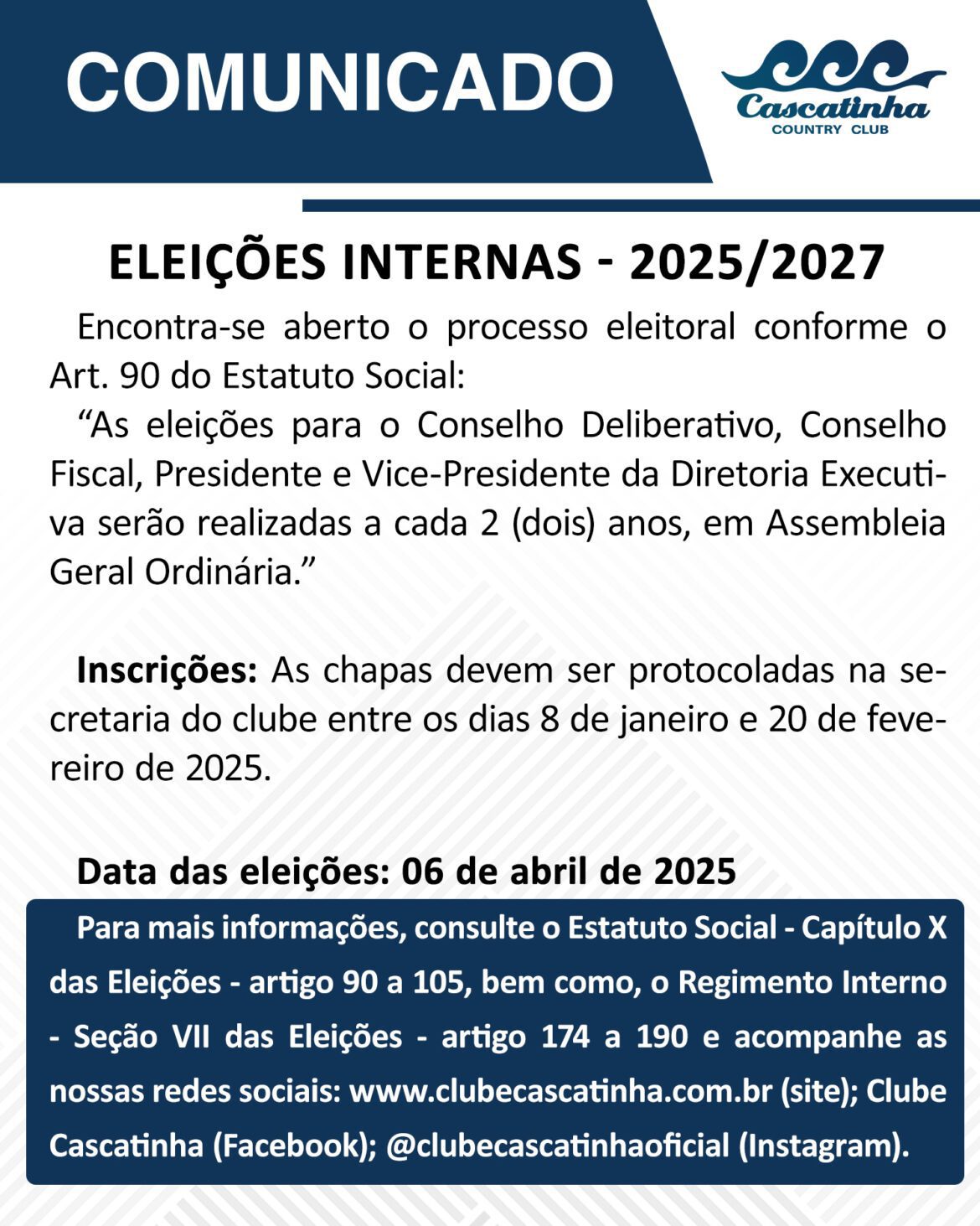 Sem categoria Eleição 2025/2027 by comunicacao 8 de janeiro de 2025 written by comunicacao 8 de janeiro de 2025 0 comment 0 FacebookTwitterPinterestEmail previous post Colônia de Férias next post ELEIÇÃO 2025/2027 – NOTA 28/02/2025 You may also like PROGRAMAÇÃO CARNAVAL 2026 26 de dezembro de 2025 Colônia de Férias 2026 10 de dezembro de 2025 Procuração Assembleia Geral Extraordinário 25-11-2025 14 de novembro de 2025 PROJETO FAZER+ JUNTOS PARA CRESCERMOS JÁ 13 de novembro de 2025 Assembleia Geral 12 de novembro de 2025 RÉVEILLON CLUBE CASCATINHA 2026 15 de outubro de 2025 Domingão Esportivo 10 de outubro de 2025 Festa Primavera CCC 8 de outubro de 2025 Dia das Crianças no Cascatinha será um espetáculo de diversão e alegria 8 de outubro de 2025 Um fim de semana inteiro para celebrar o Dia dos Pais no... 23 de setembro de 2025 Leave a Comment Cancel Reply Save my name, email, and website in this browser for the next time I comment.